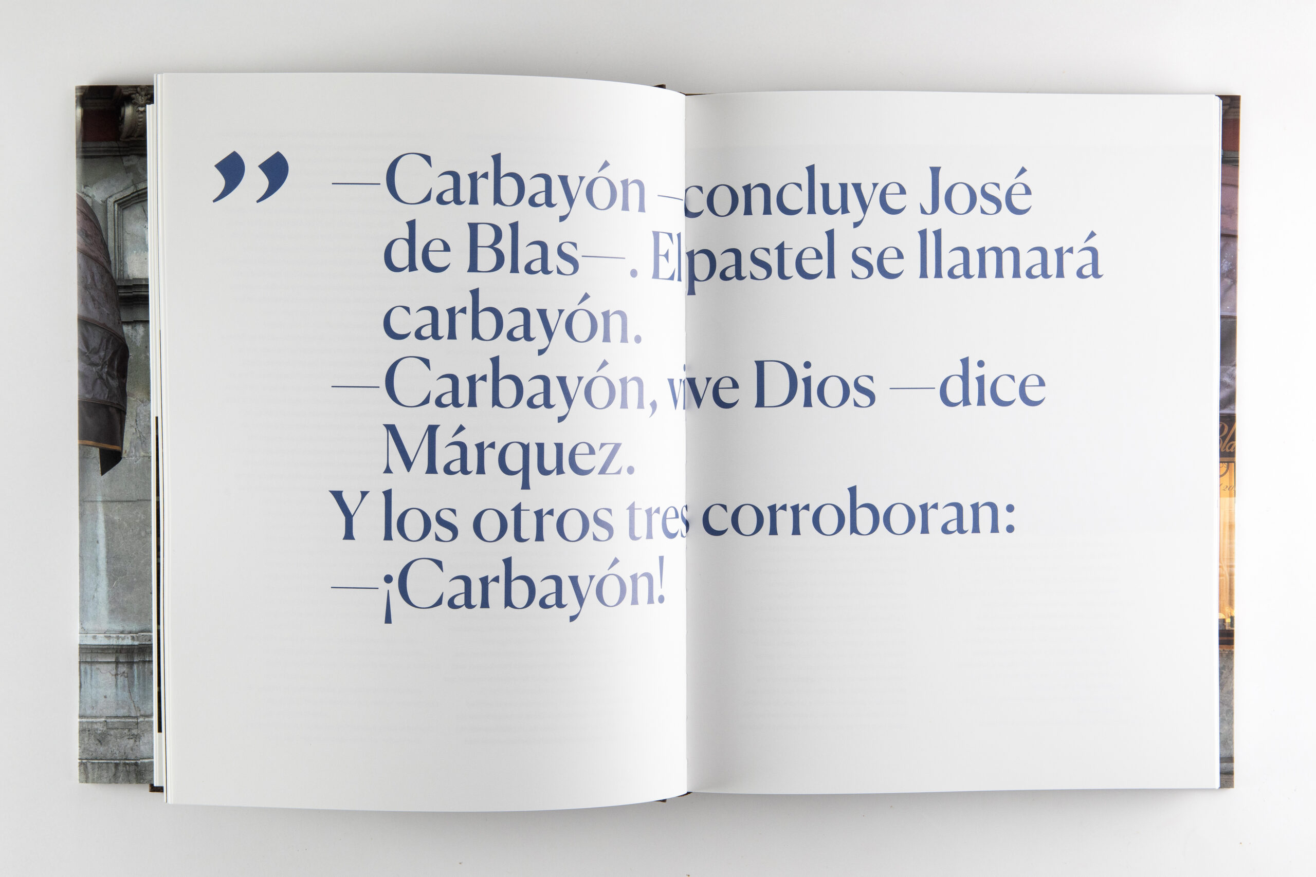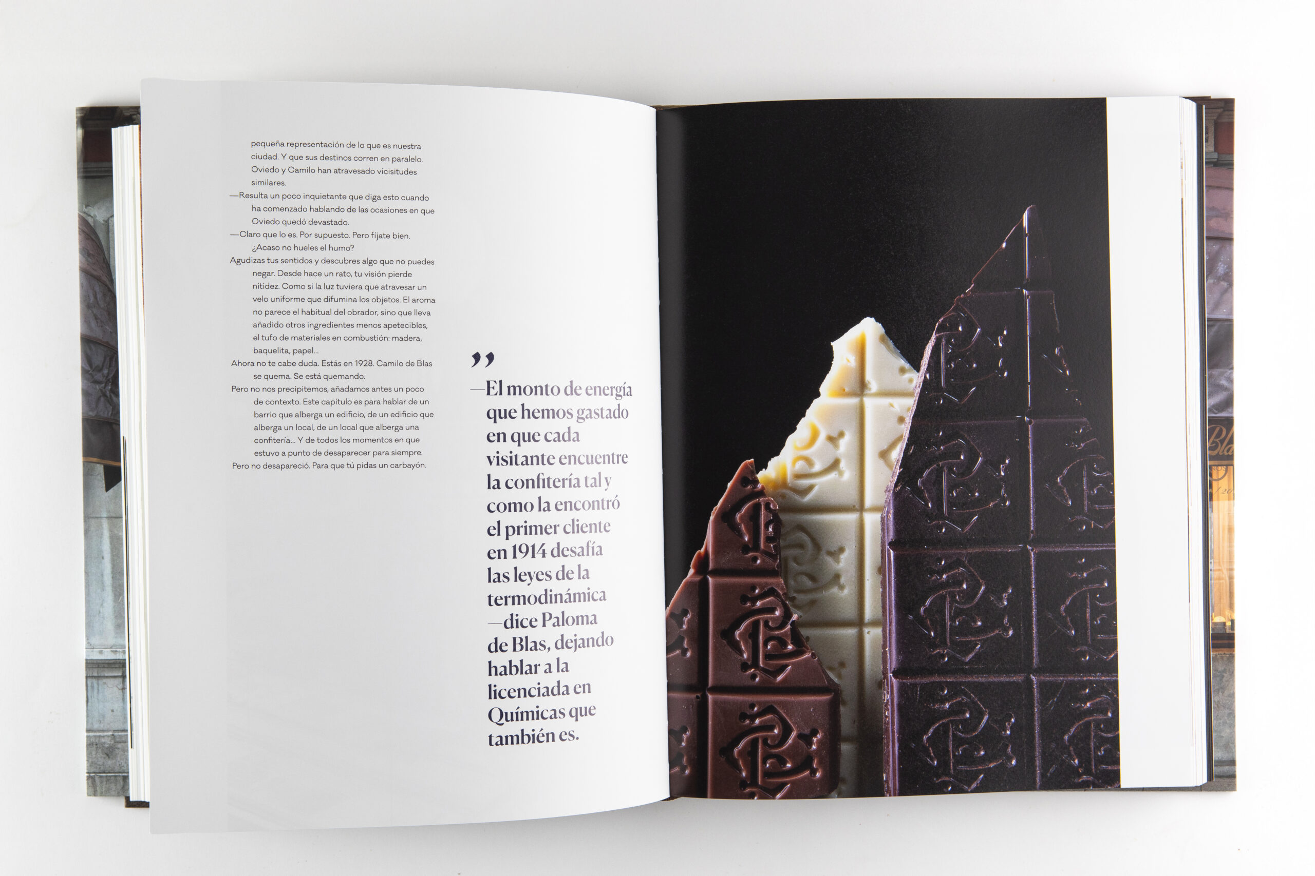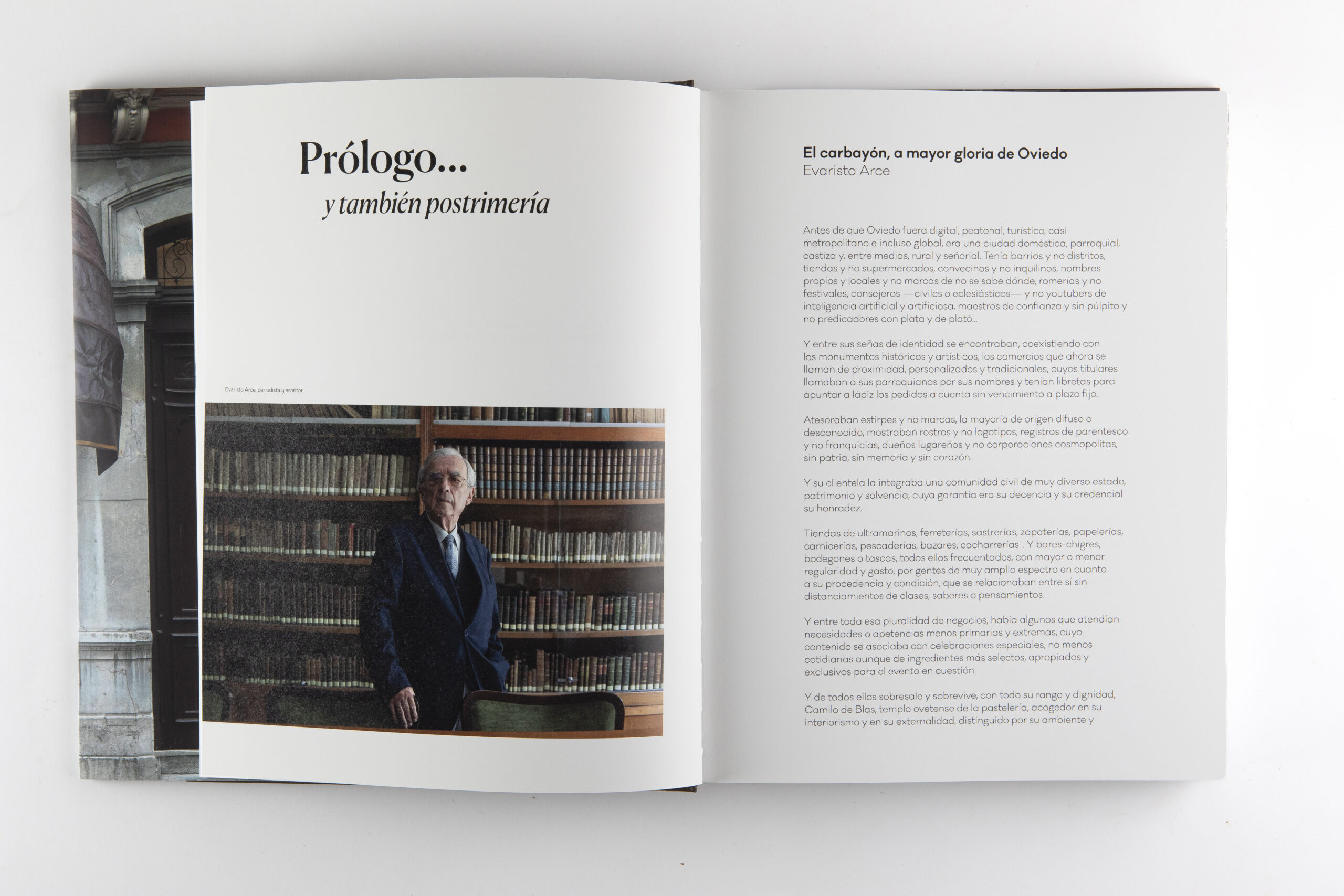 Con motivo del centenario del dulce más icónico de la pastelería asturiana Camilo de Blas, el carbayón, recibimos el encargo de crear un libro único. El texto, del escritor Paco Bescós, recorre la historia de esta confitería del norte de España a través de sus personajes (la gente del obrador, los proveedores, los clientes,…) y está salpicado con fotografías de la virtuosa Mercedes Blanco. Con una edición de lujo, destaca por su cuidada selección tipográfica y una maqueta sencilla, versátil y muy consistente. El resultado, exquisito.