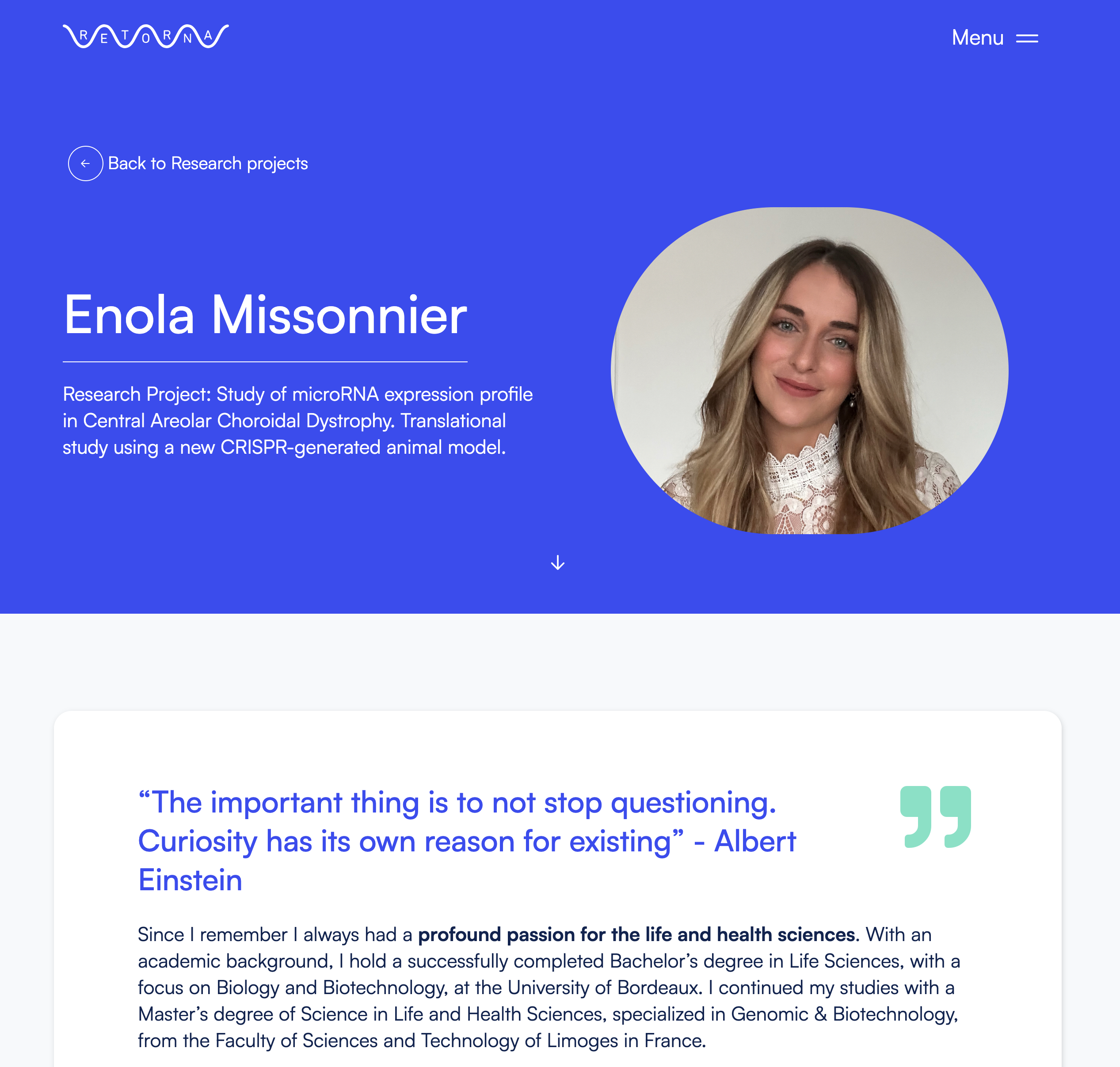 RETORNA (retina + RNA) es un proyecto científico de la Facultad de Medicina de la Universidad Católica de Valencia.